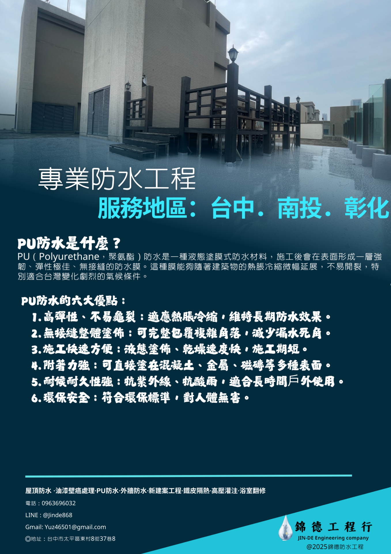 PU防水,即聚氨酯防水,是目前建築防水工程中廣泛使用的高性能防水材料。它以聚氨酯為主要成分,經過化學反應形成具有高彈性和高附著力的防水塗膜。由於其卓越的性能,PU防水被廣泛應用於屋頂、地下工程、廚房、衛生間、陽台、水池等防水工程。